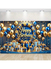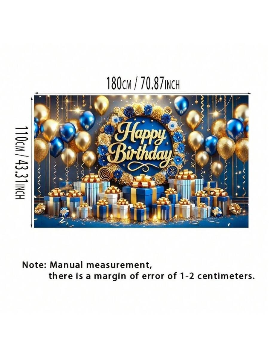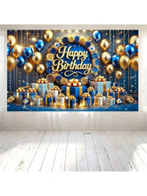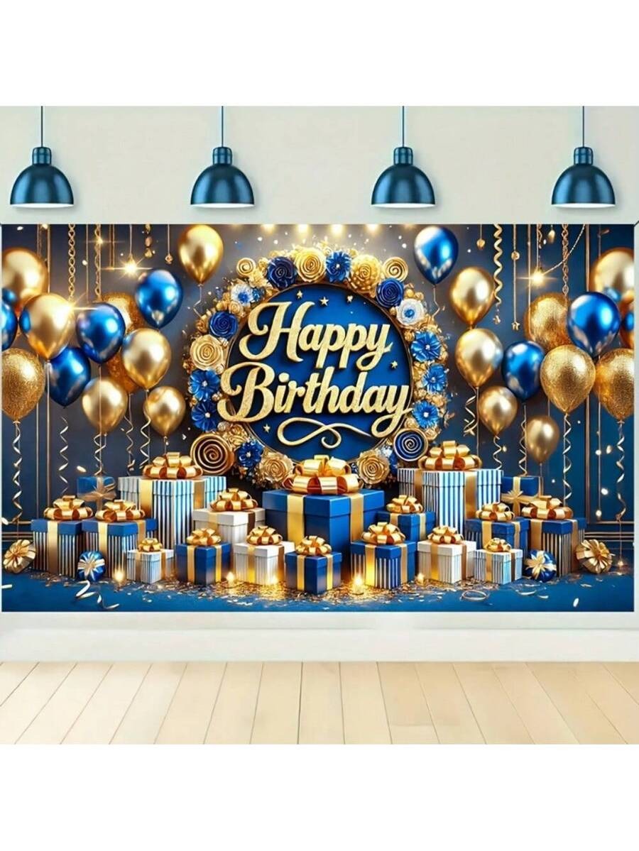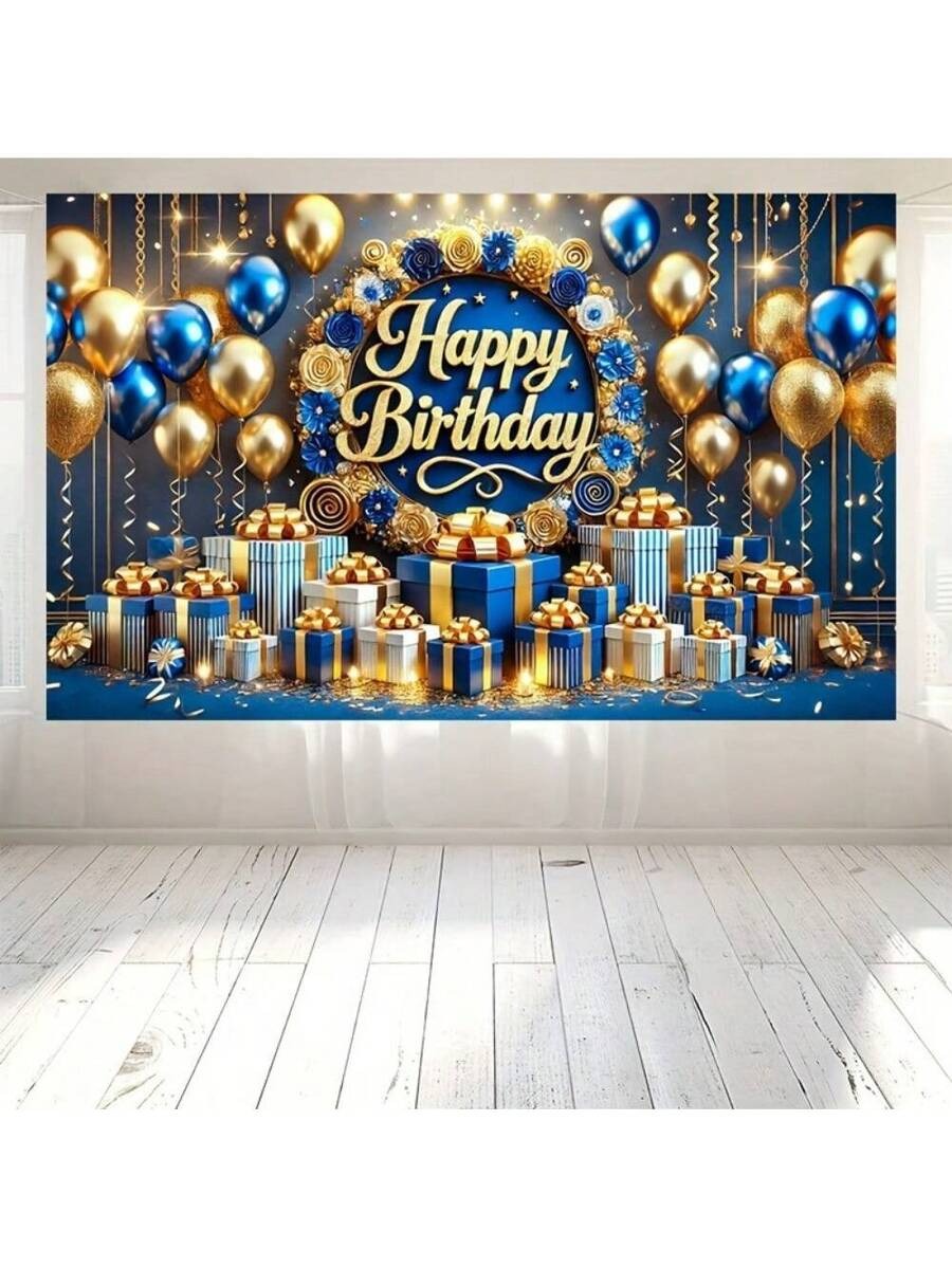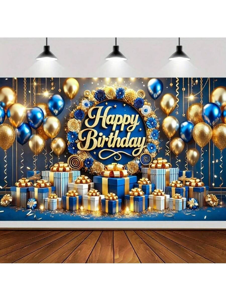 Blue & Gold Happy Birthday Banner – 3D Text Design