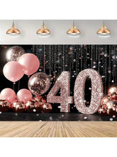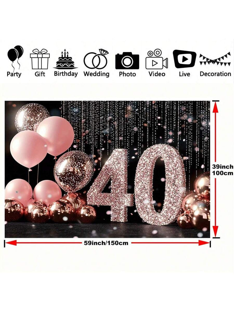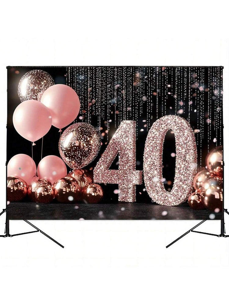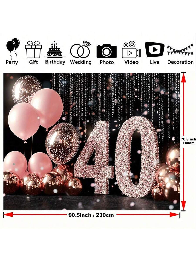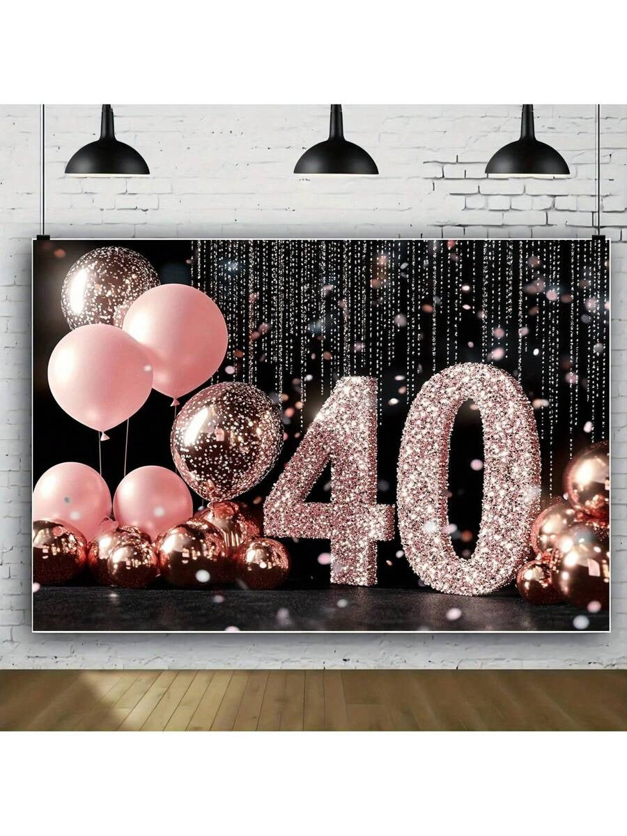 Champagne Pink 40th Birthday Backdrop – Elegant Milestone Party Banner