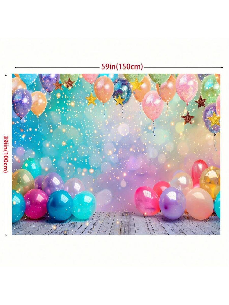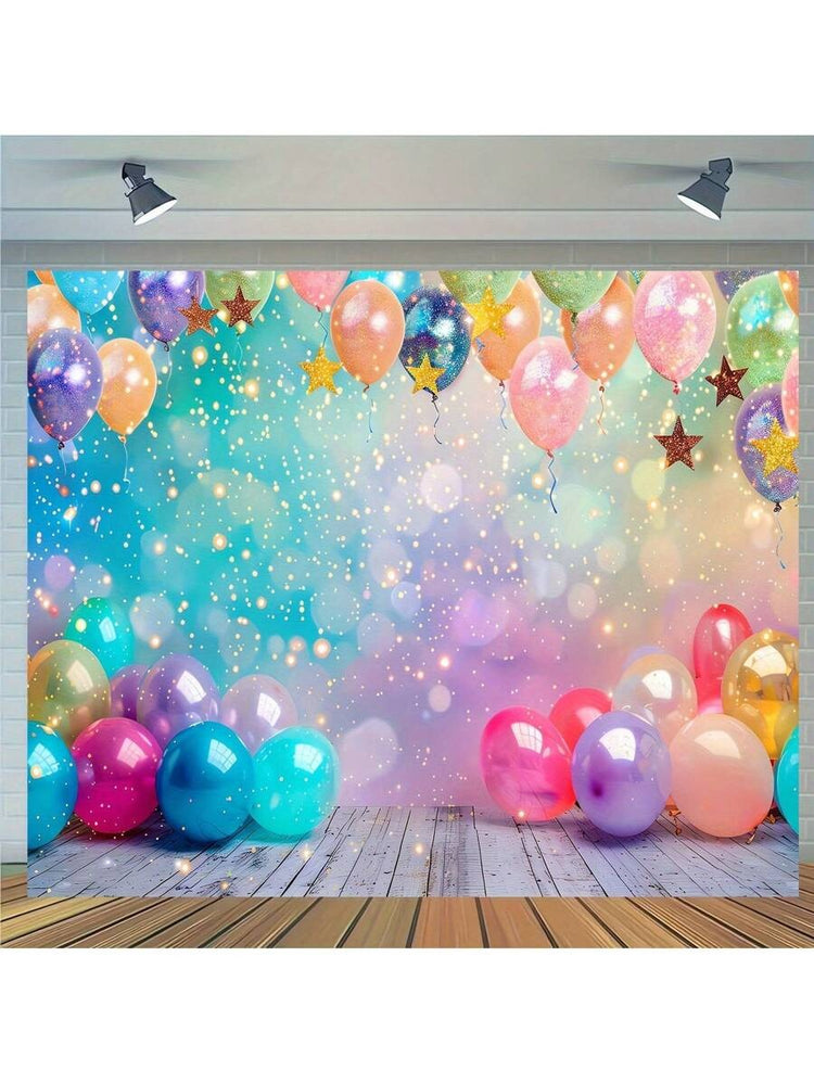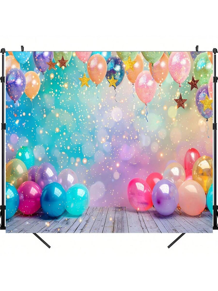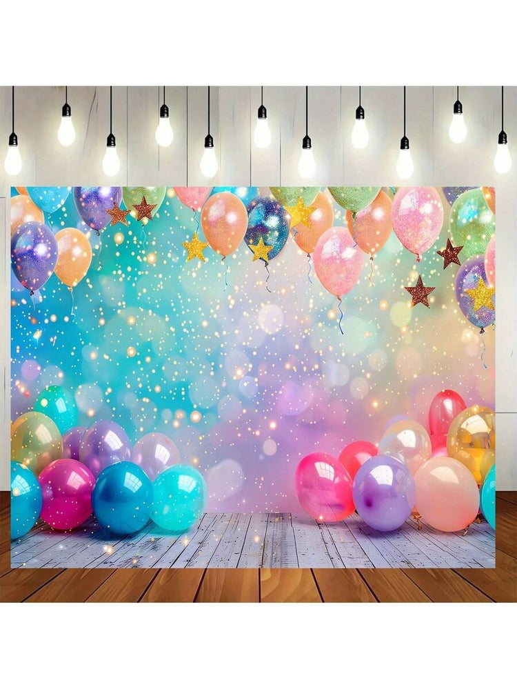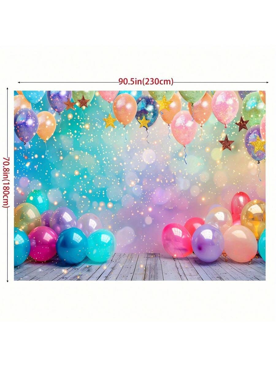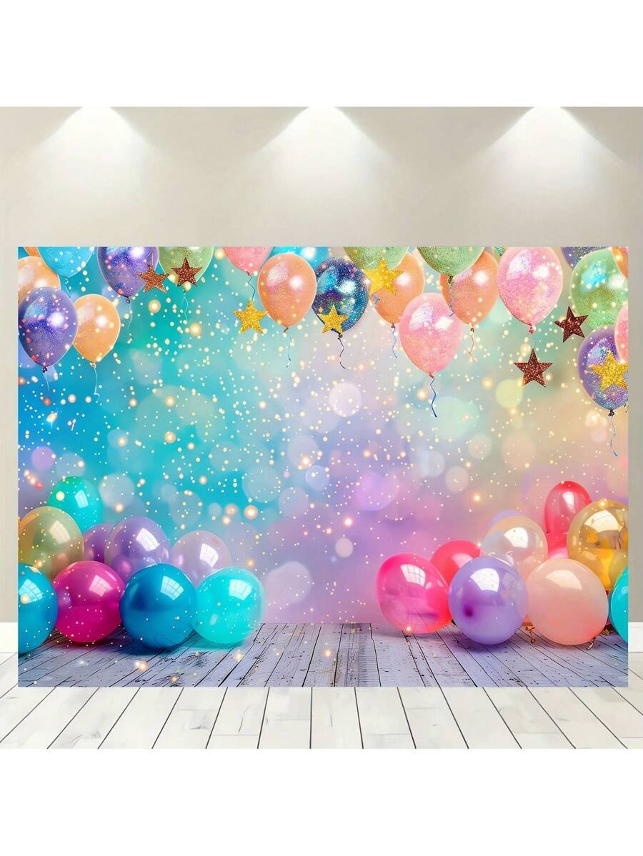 Colorful Balloon & Stars Birthday Backdrop – Polyester