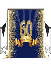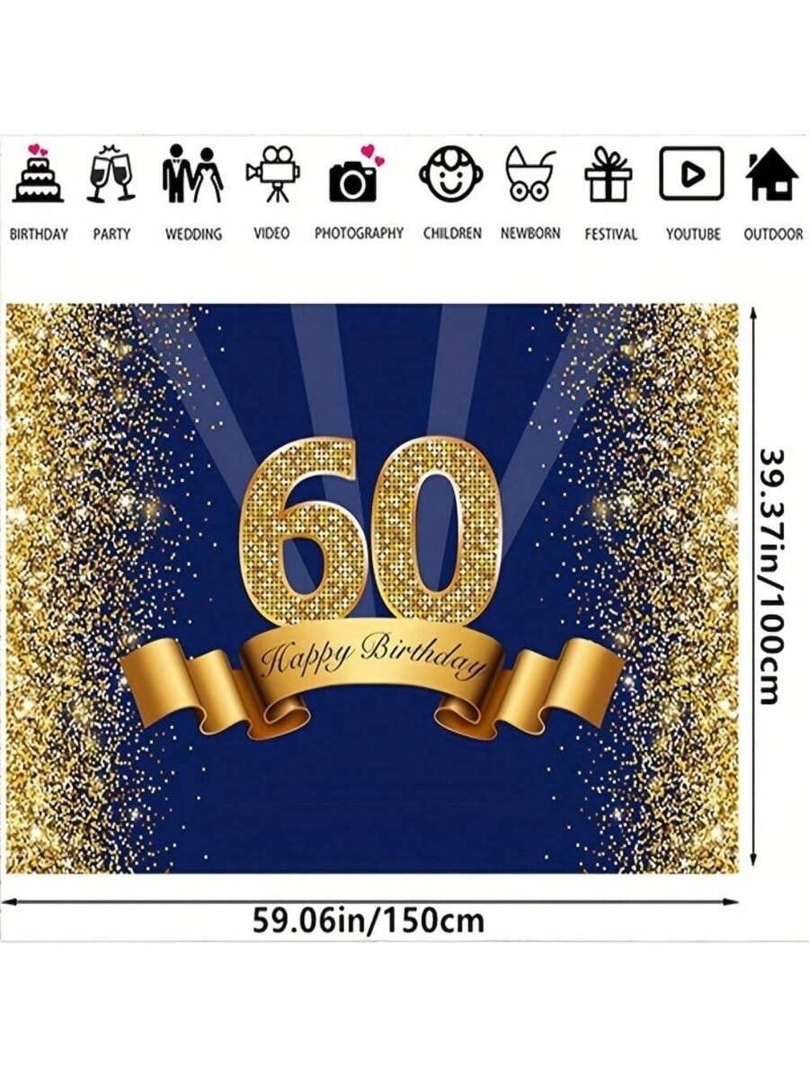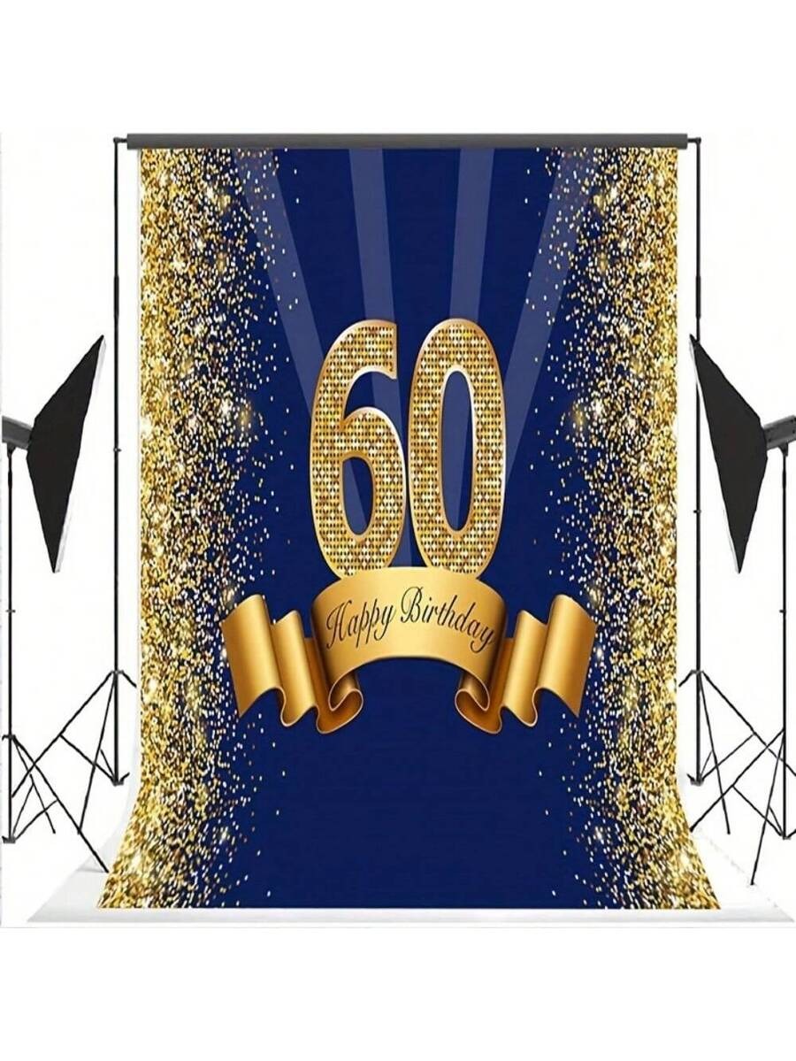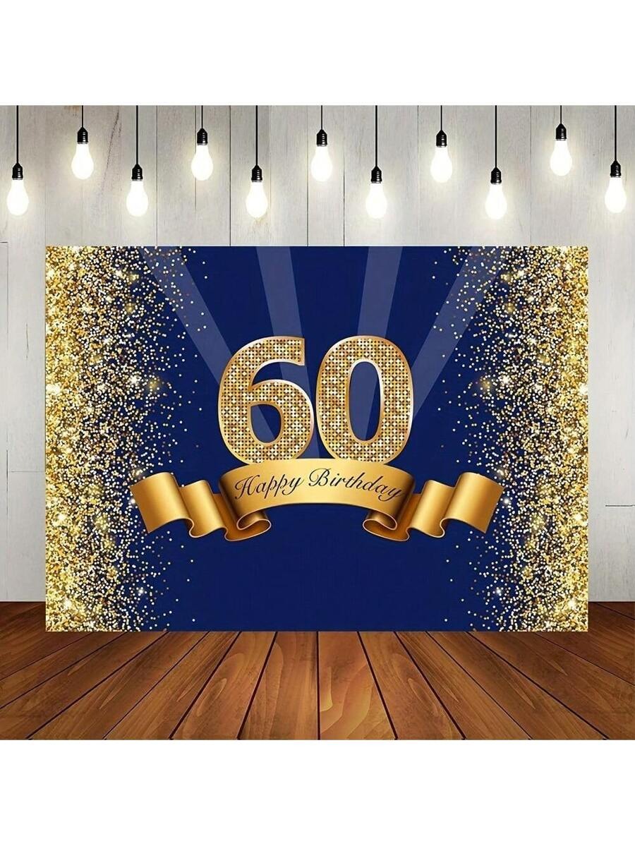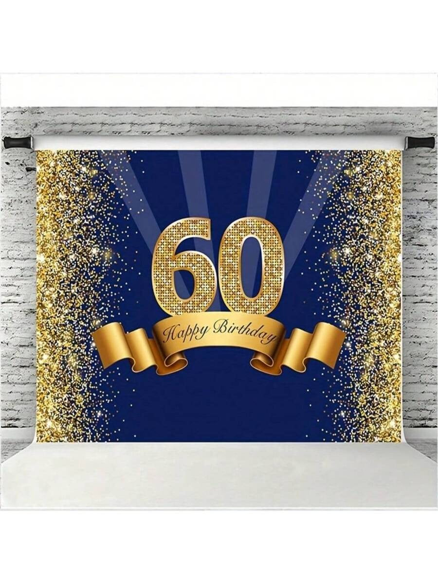 Elegant Navy & Gold 60th Birthday Backdrop – Sparkle Photo Booth Banner