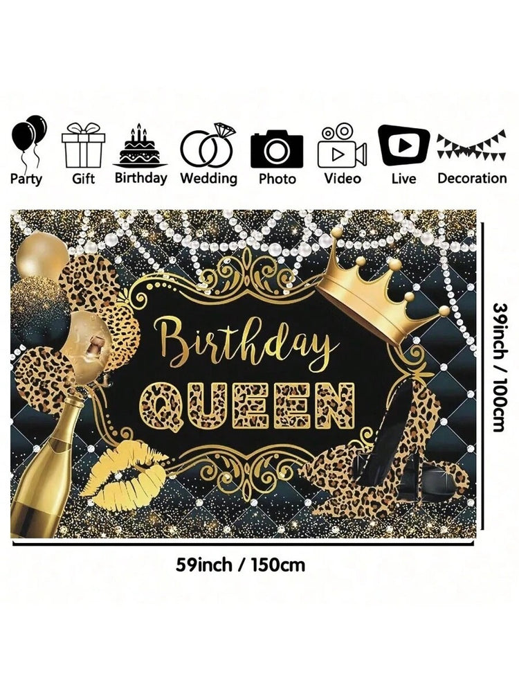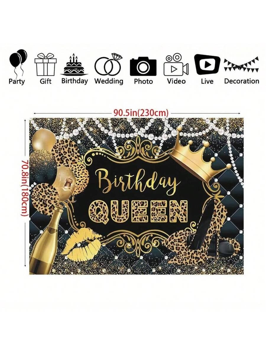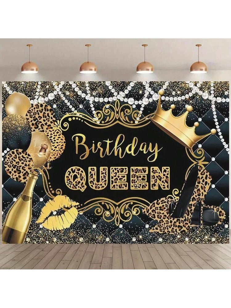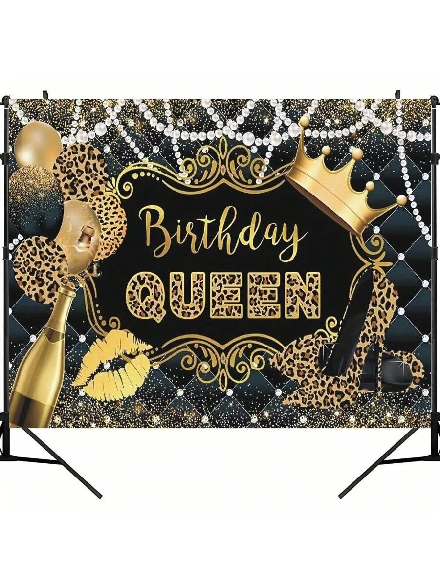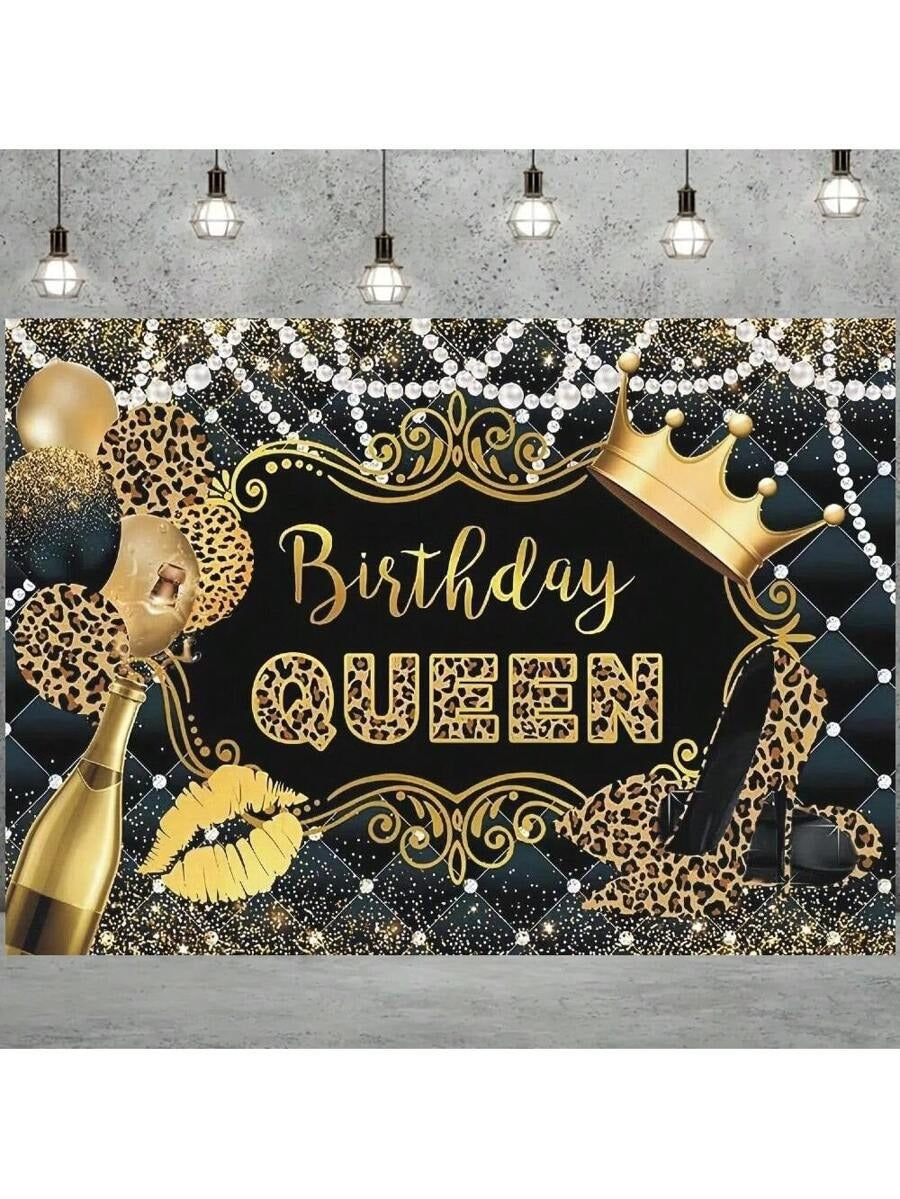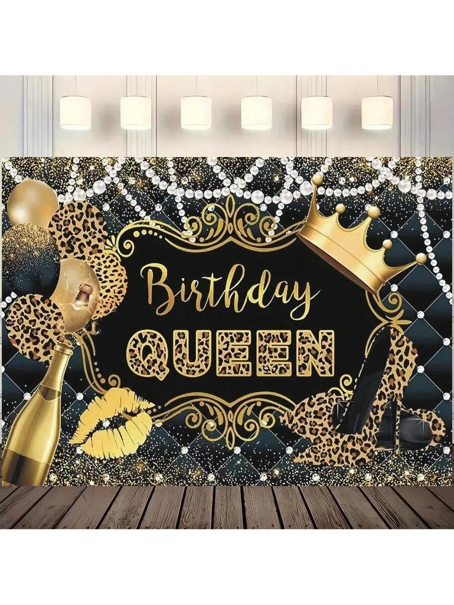 Queen’s Birthday Leopard Print Backdrop – Glam Black & Gold Theme