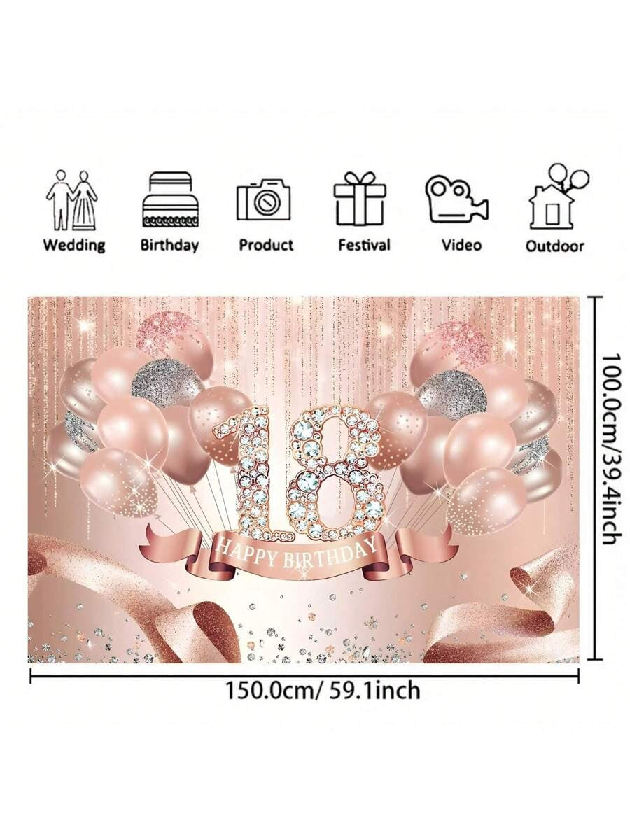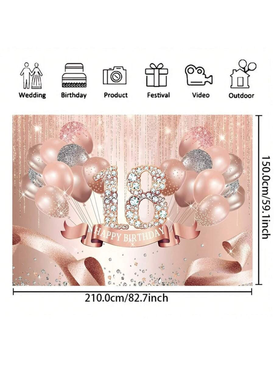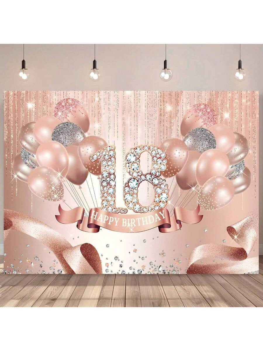 Rose Gold Ribbon & Diamond Birthday Backdrop