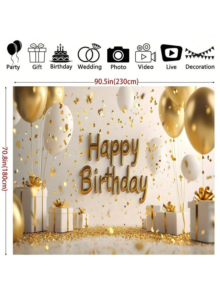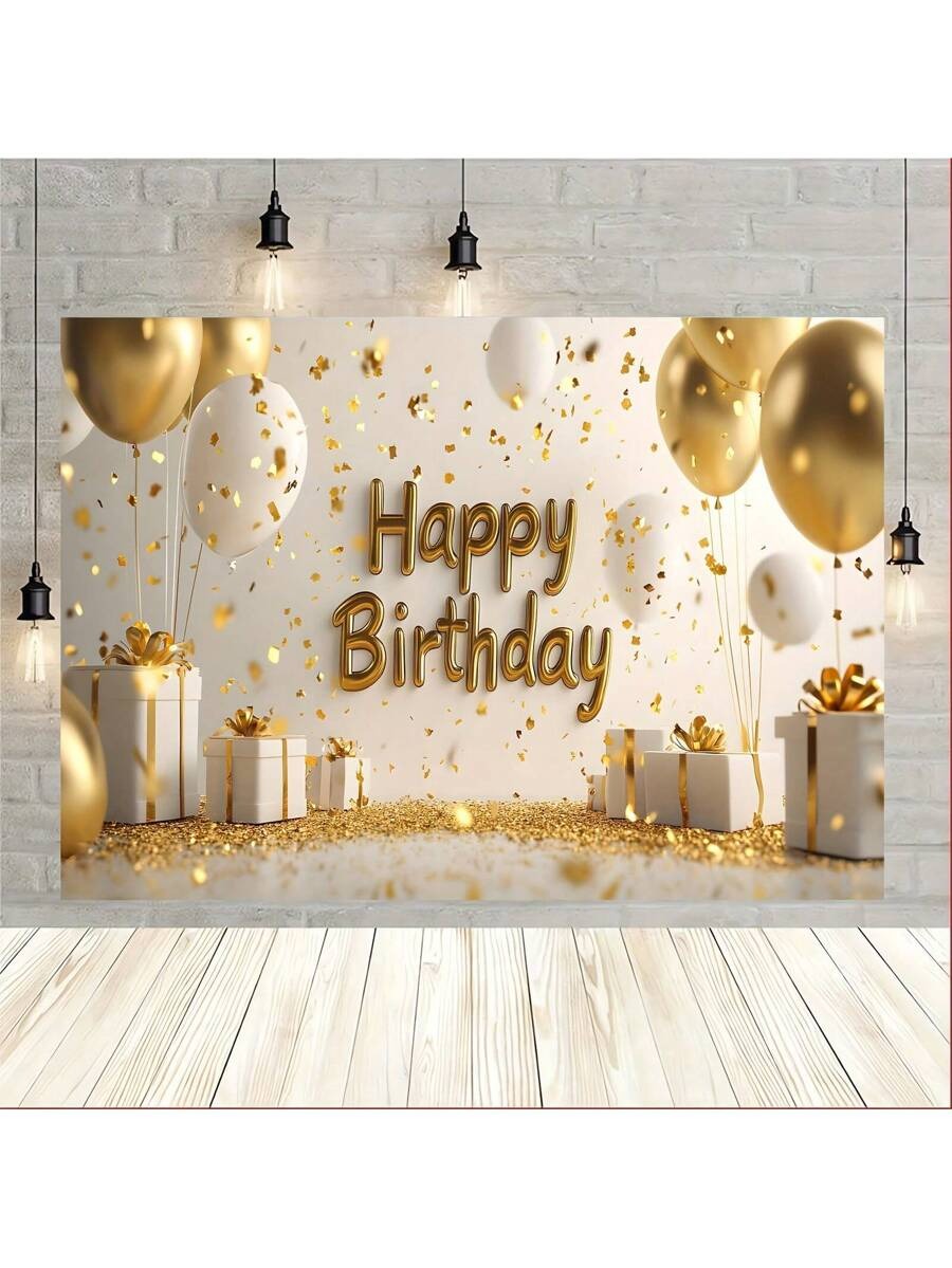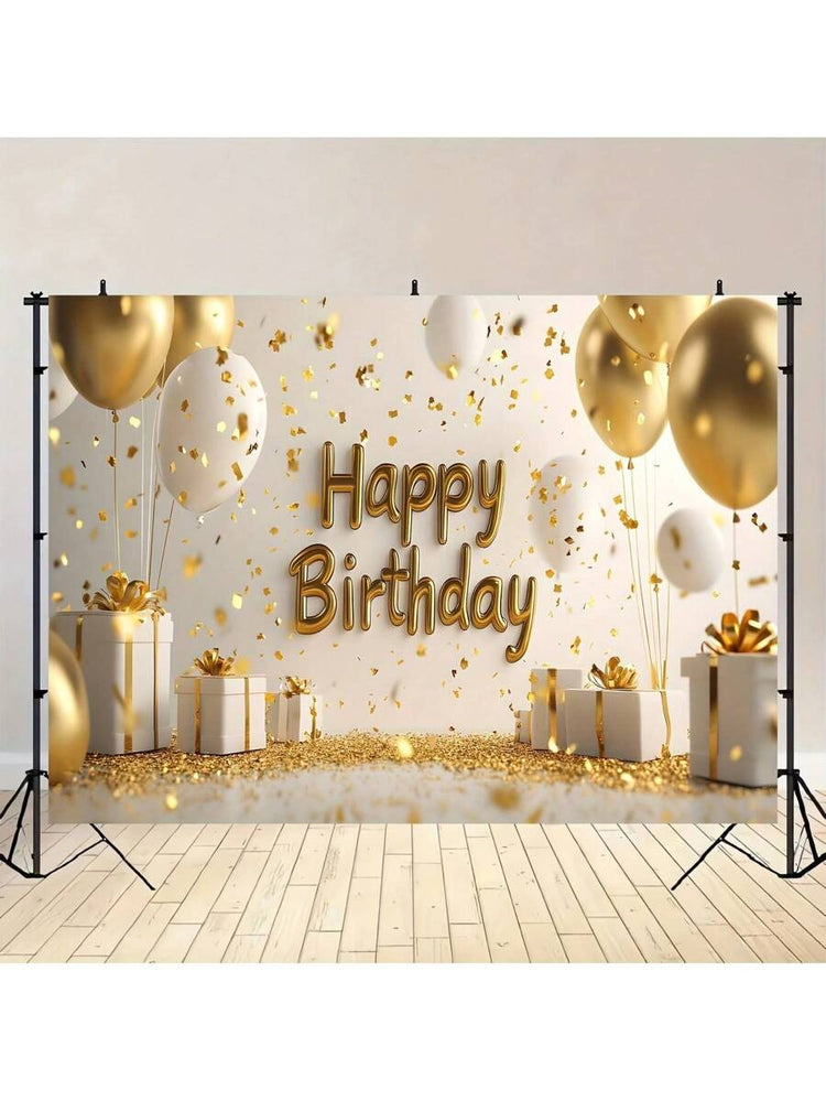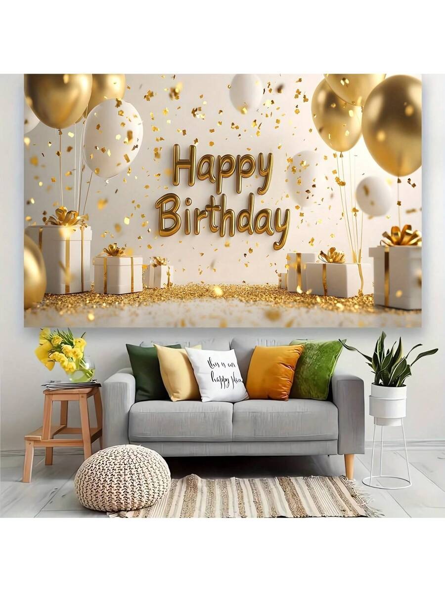 Sparkling Golden Square Birthday Backdrop – Shimmering Polyester Photography Display
