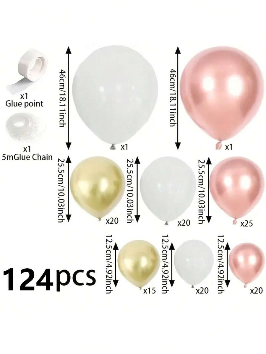 124PCS Rose Gold & Gold Balloon Garland Arch Kit