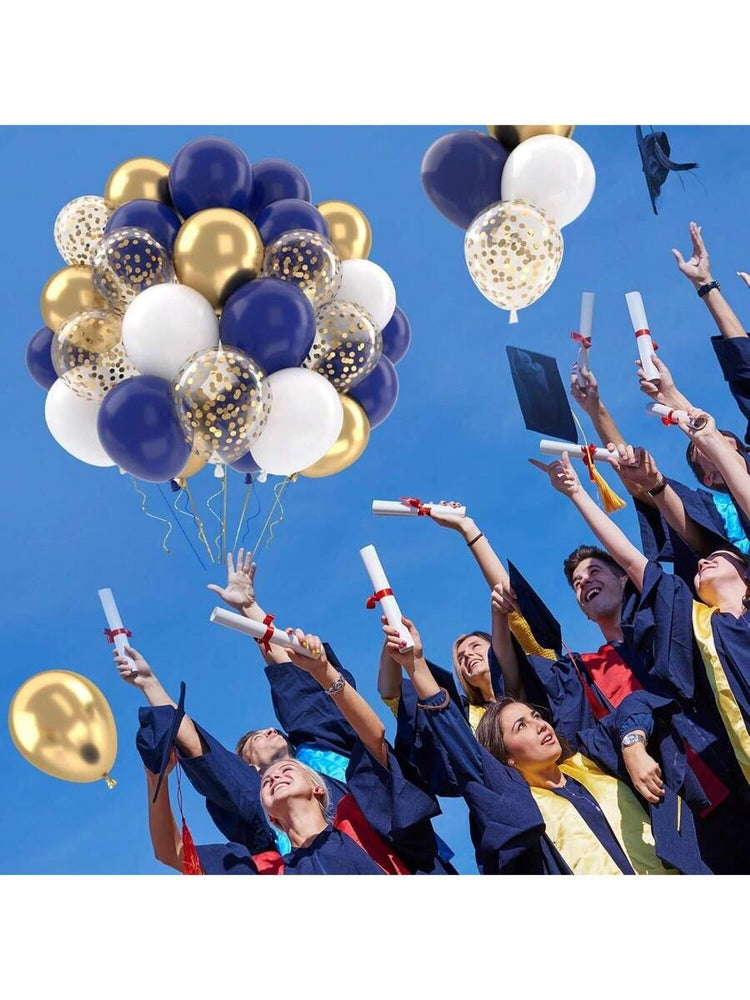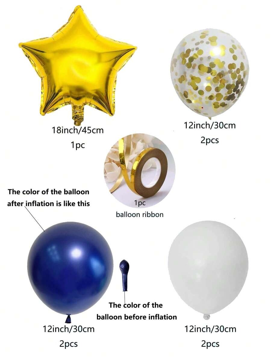Ink Blue Confetti Balloon Set with Gold Star Ribbon