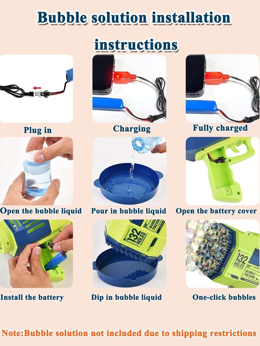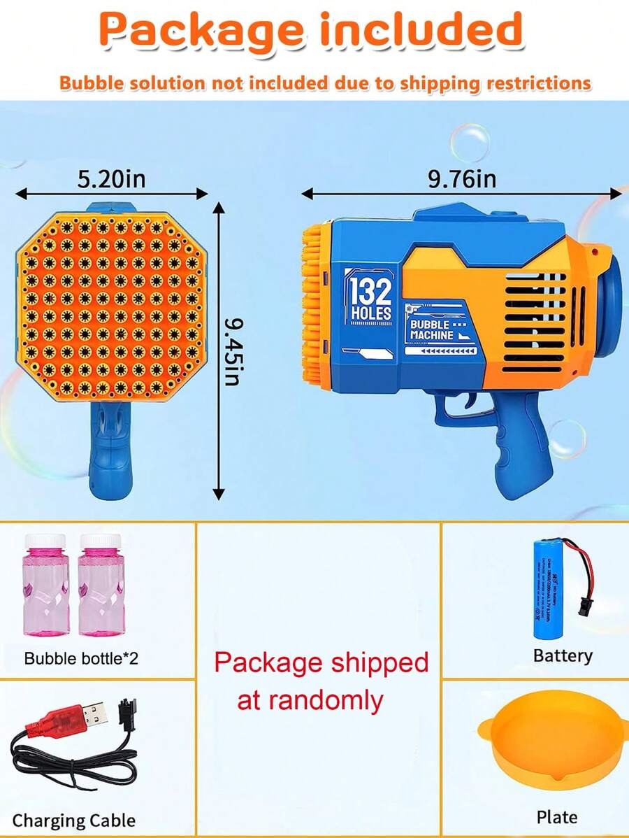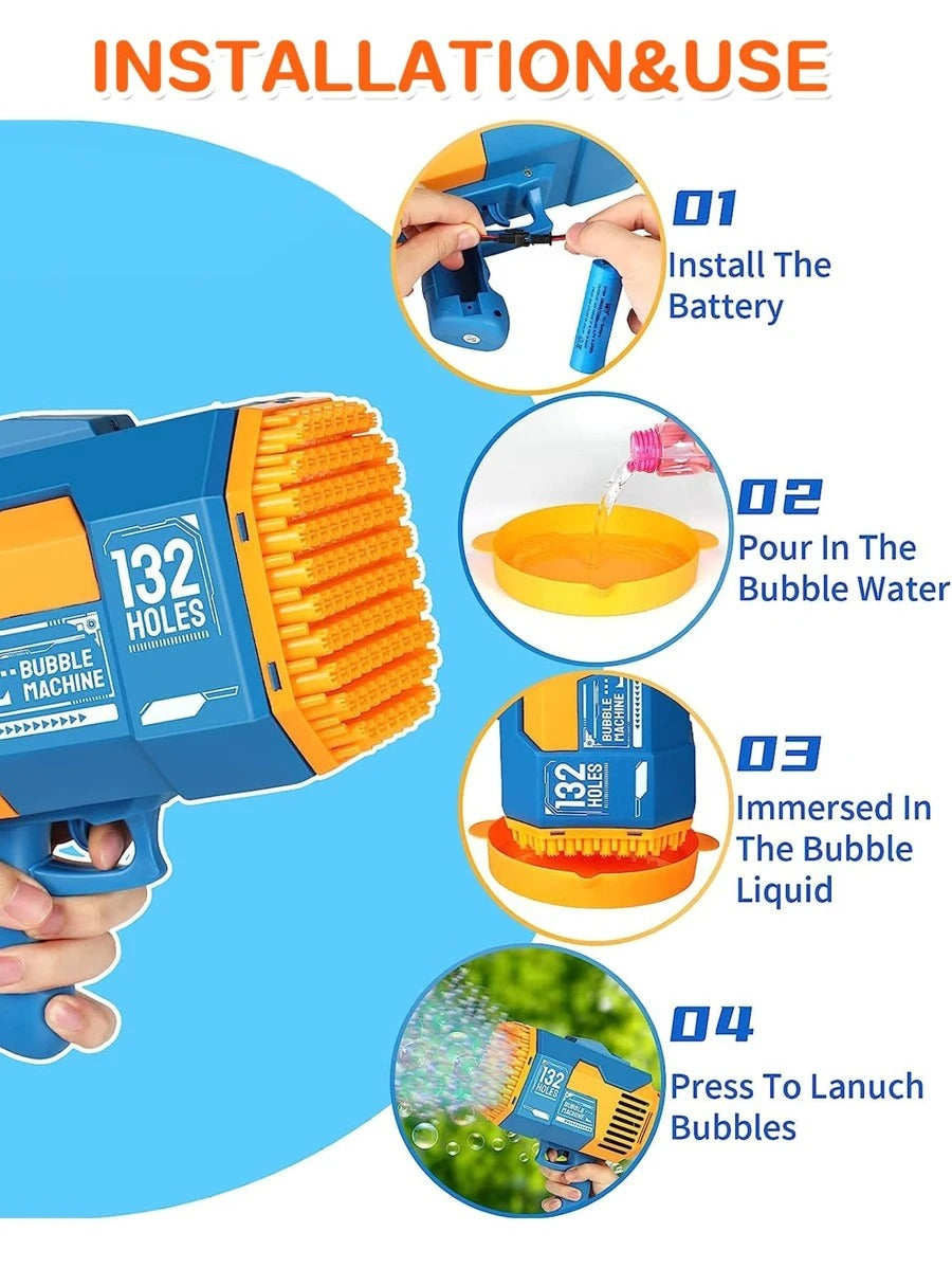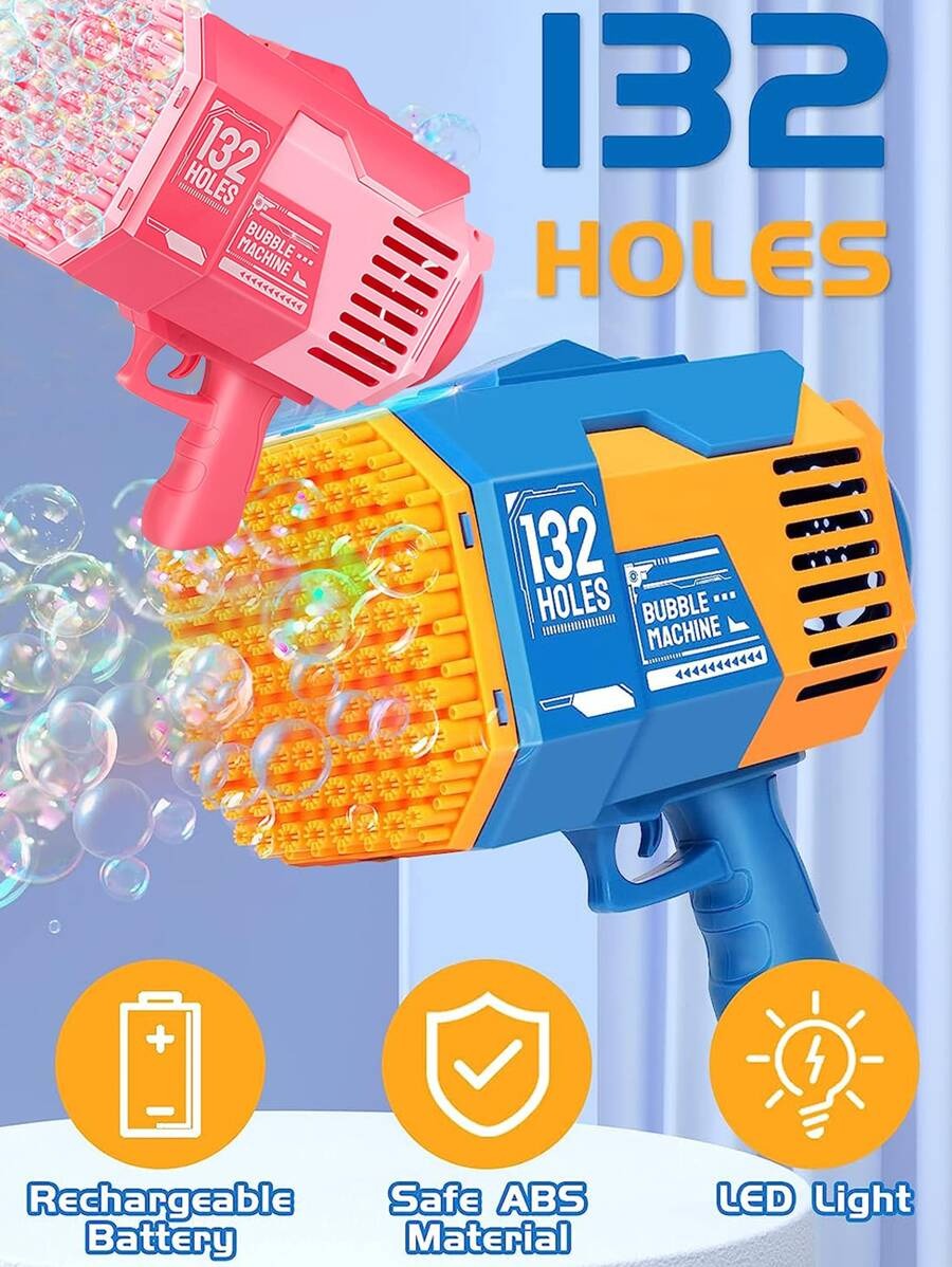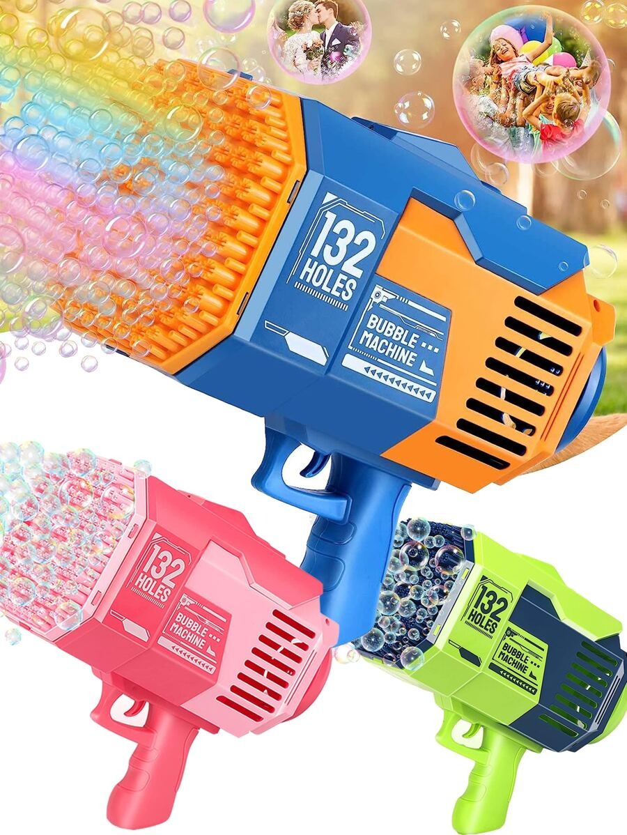 132-Hole Light-Up Automatic Bubble Gun for Kids & Adults