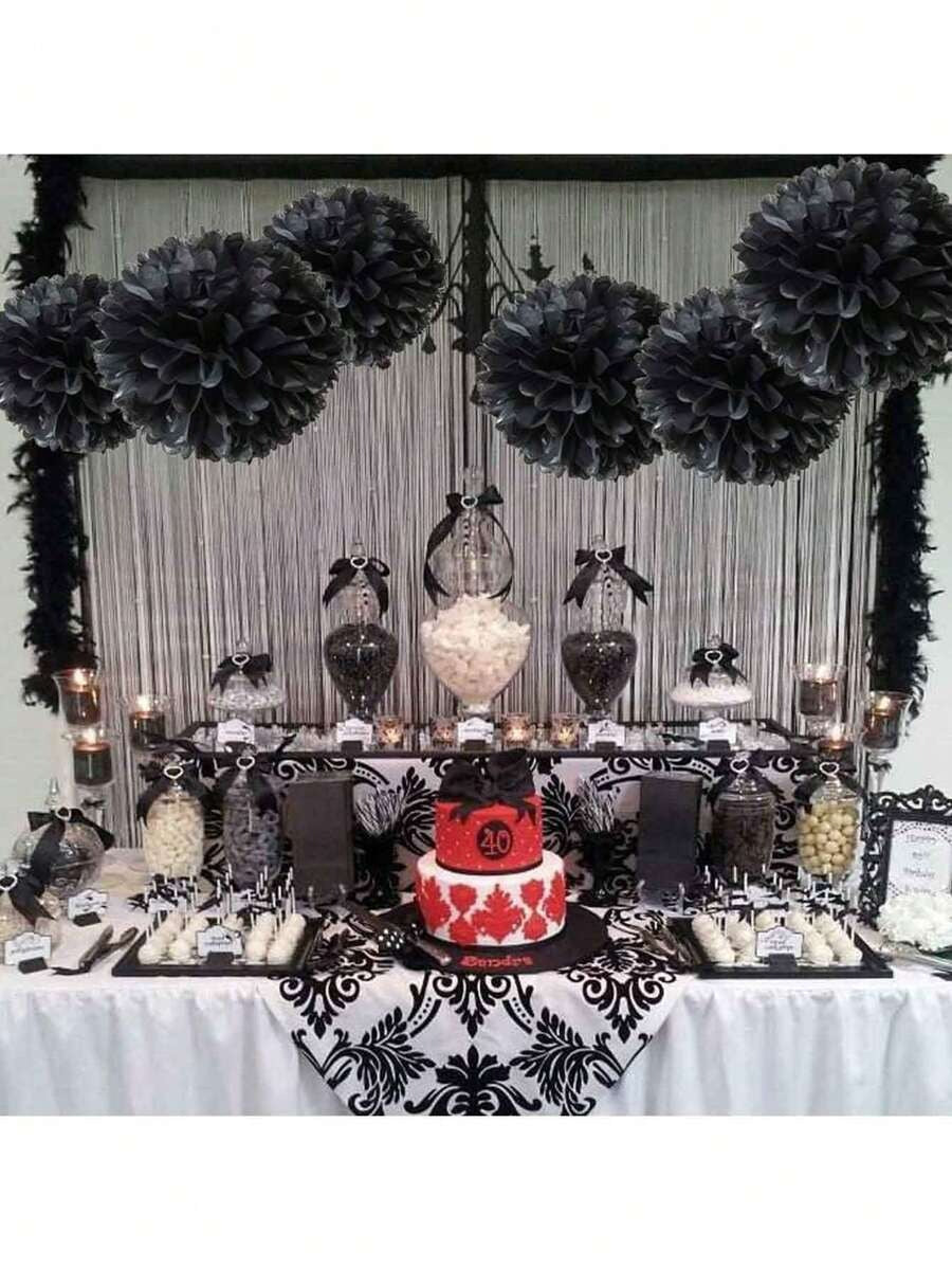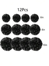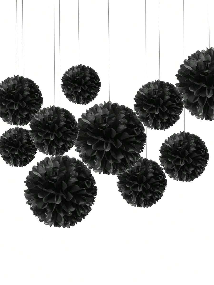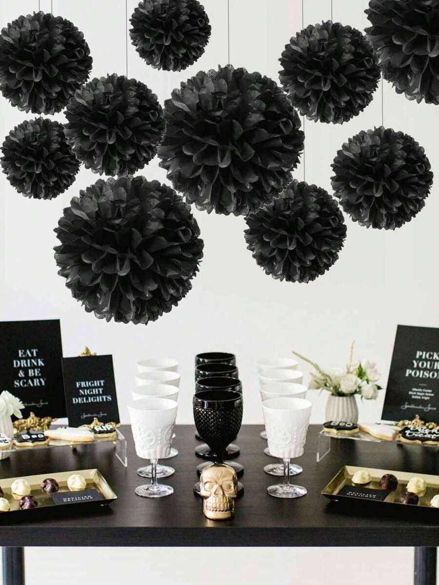 Black Paper Pompoms & Lanterns – Halloween Party Decor