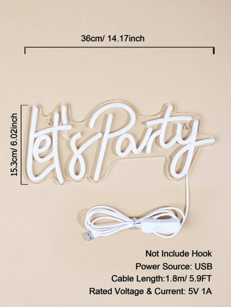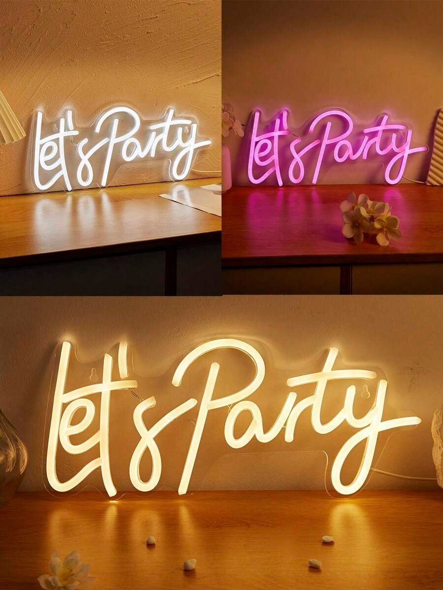 Let's Party LED Neon Sign – USB Powered Wall Decor