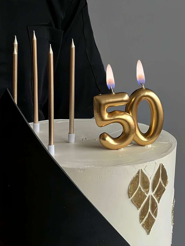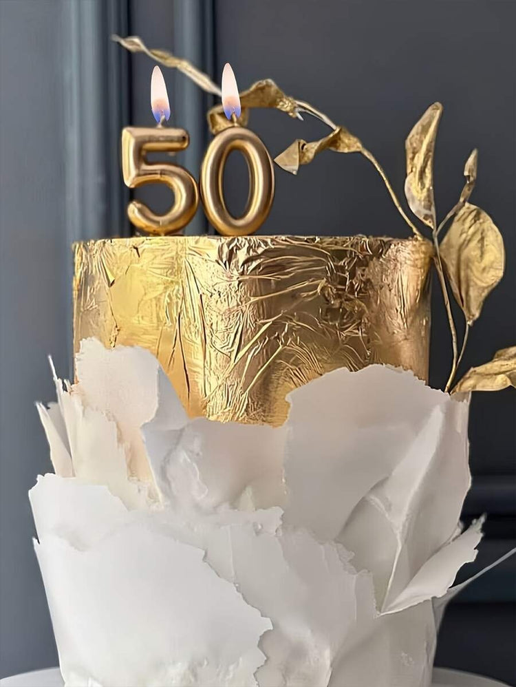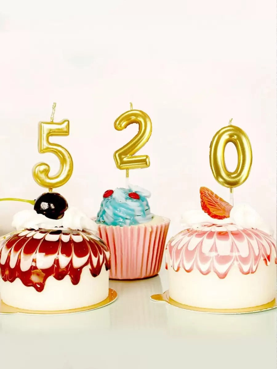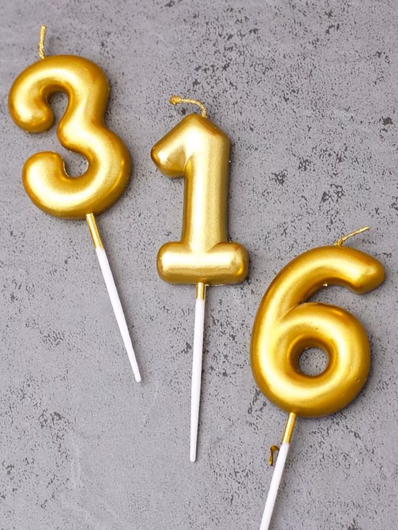Gold Number Cake Candle – 0–9 Birthday Decoration