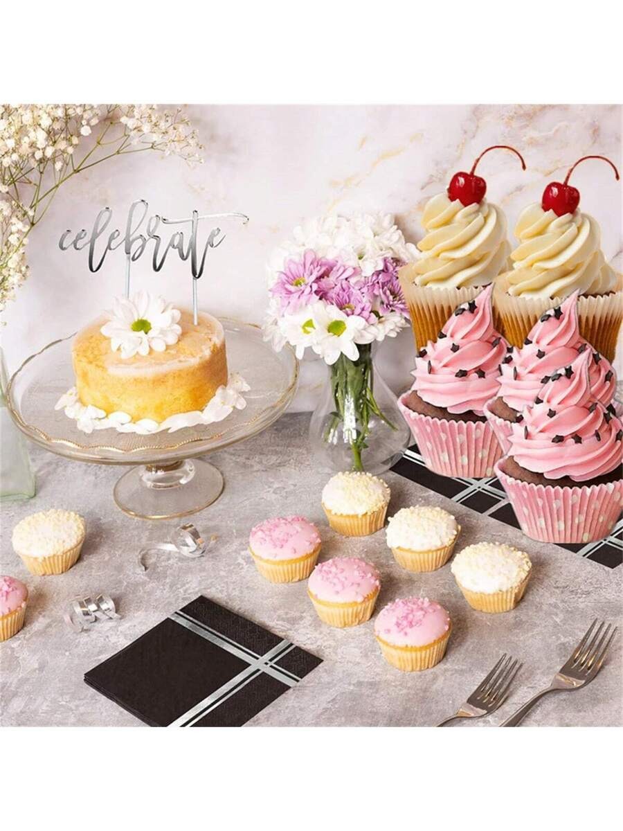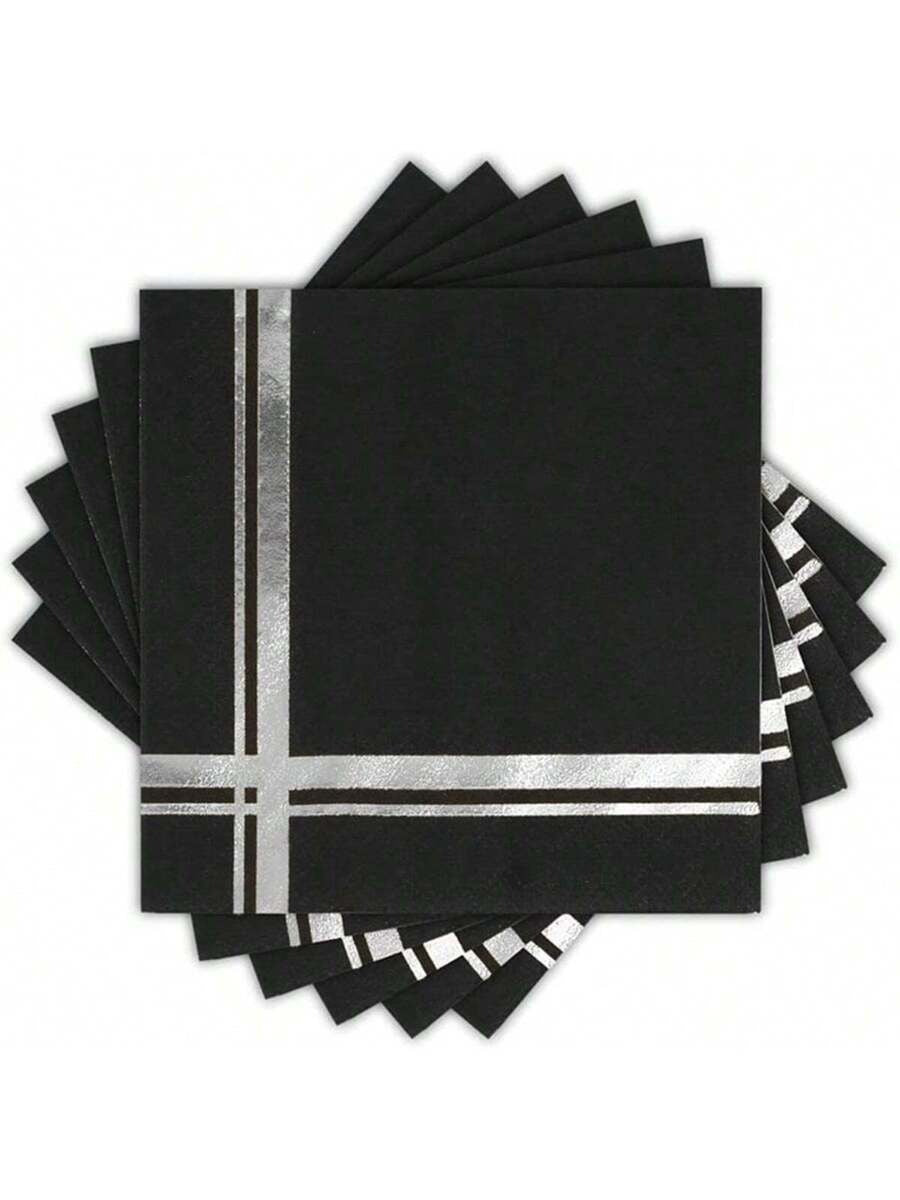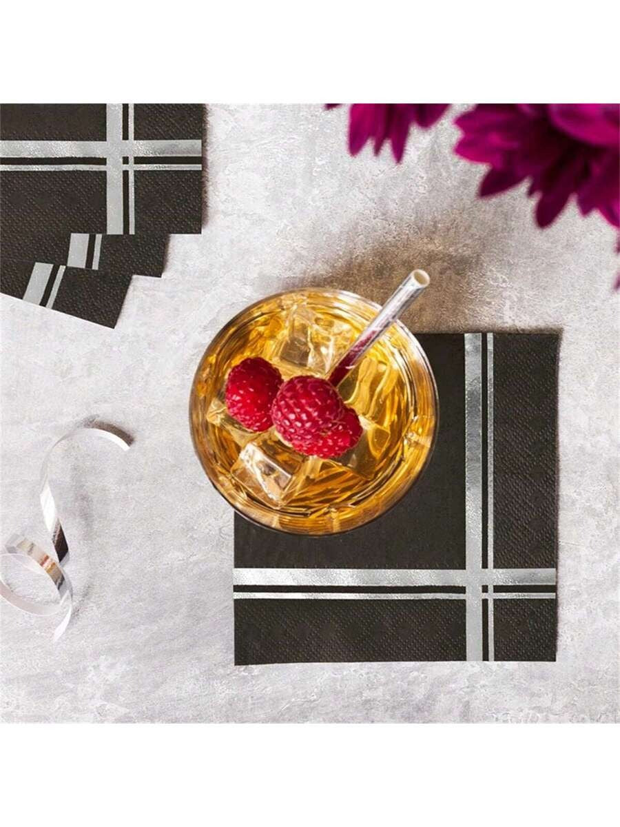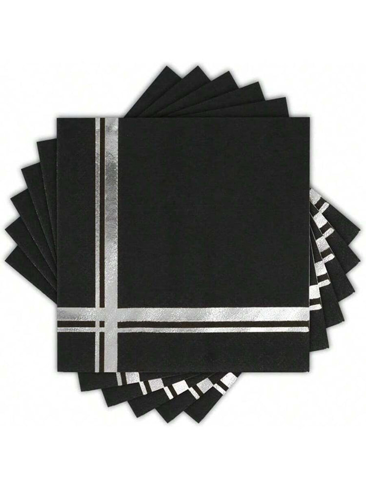 Black & Silver Foil Cocktail Napkins – 20pcs Party Set