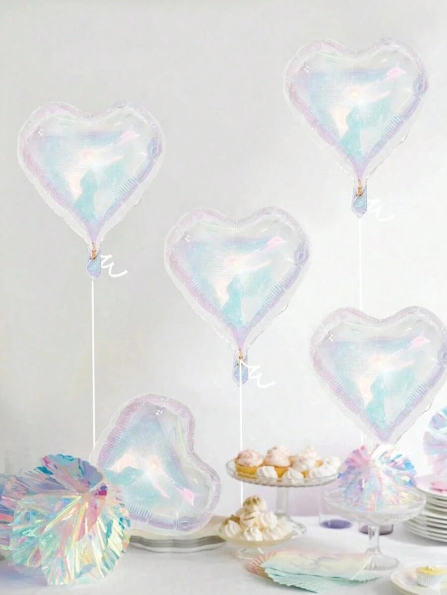5/10pcs 18" Holographic Heart Foil Balloons – Multicolor Laser Effect