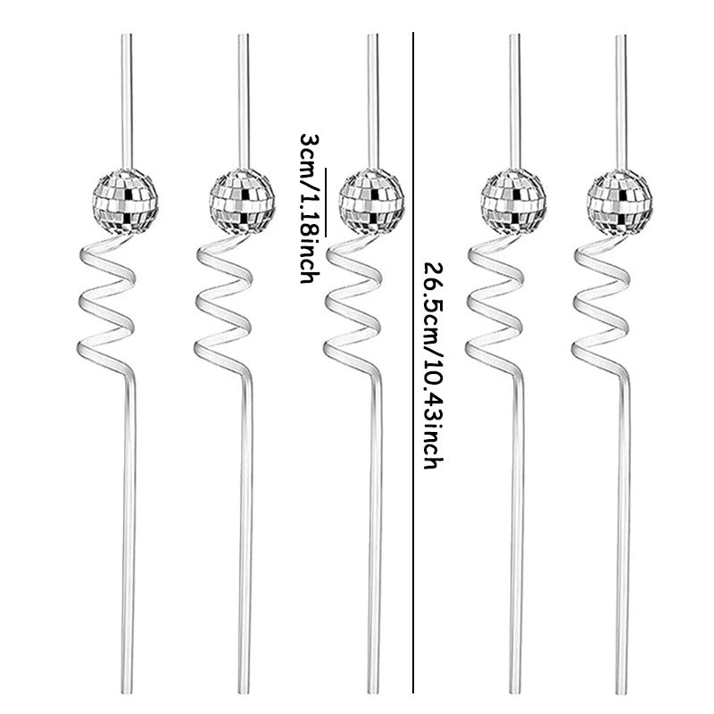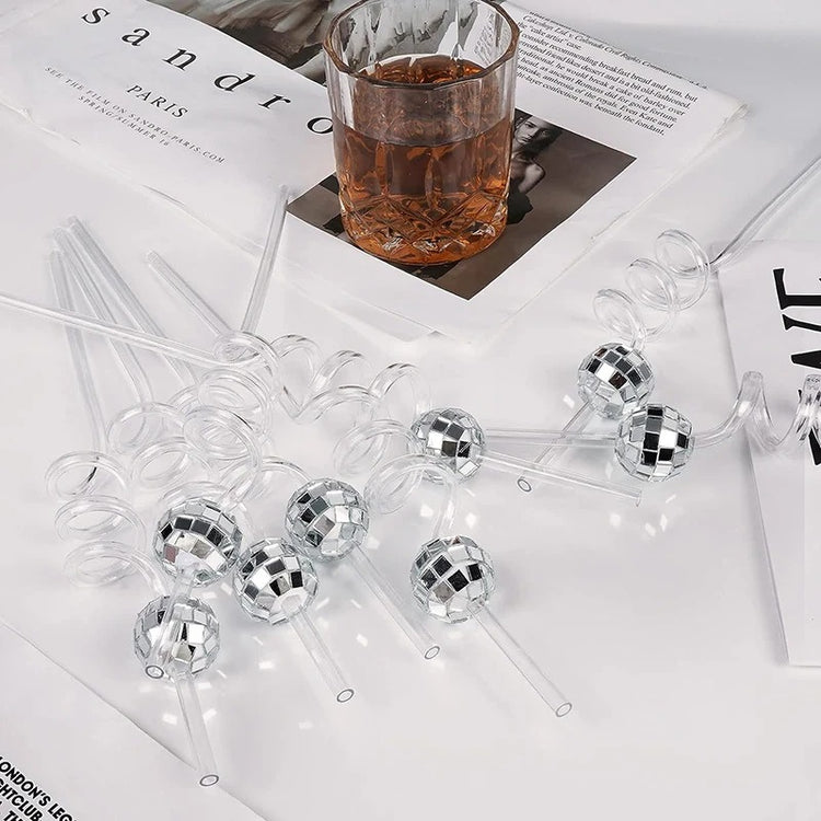6pcs Mini Mirror Disco Ball Party Straws