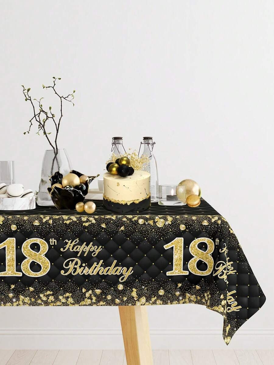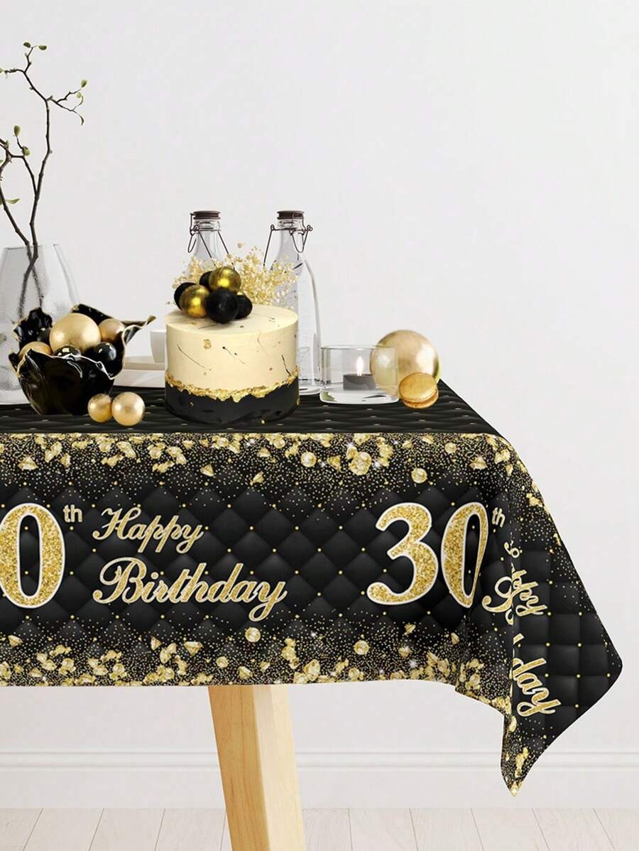 Black & Gold Birthday Tablecloth – Fragmented Design