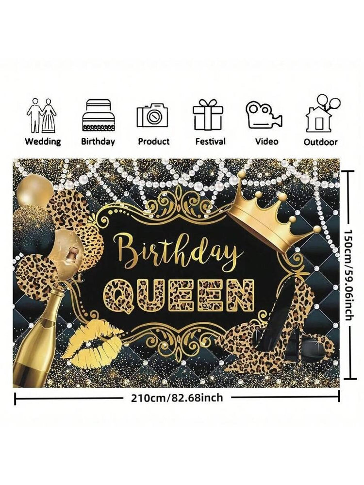 Queen’s Birthday Leopard Print Backdrop – Glam Black & Gold Theme