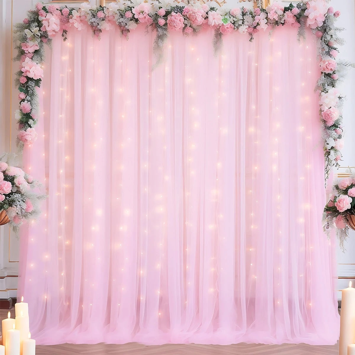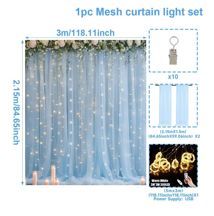 Tulle Backdrop Curtains with LED Lights – 1 Set (2 Pieces)