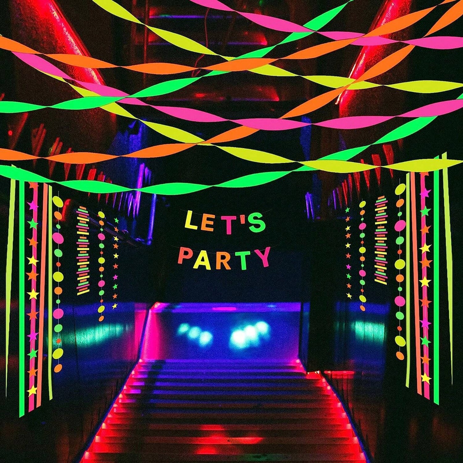 UV Neon Glow Crepe Paper Streamers – 2/4/8/12pcs (1000in/Roll)